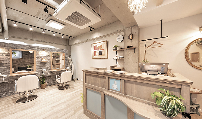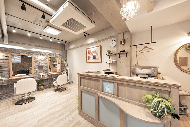 新しくリニューアルした住宅街にある隠れ家サロン。落ち着きのある緑を大切にした明るいリラックス空間。